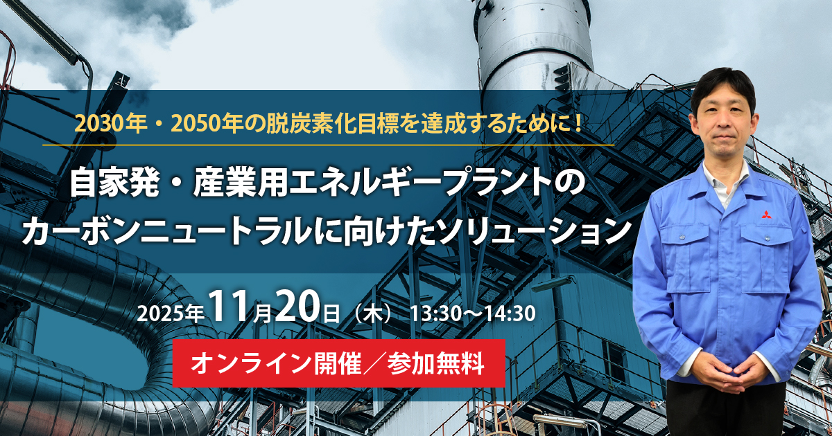 11月20日(木)開催のウェビナー「自家発・産業用エネルギープラントのカーボンニュートラルに向けたソリューション」への参加申し込みフォームです。ご入力内容を弊社で確認後※、11月19日(水)に参加用URLをお送りいたします。※同業他社およびその関係者の方は、ご参加をご遠慮いただく場合がありますので、あらかじめご了承ください。